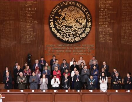 Al término del acto solemne, el mandatario reconoció a la comandanta suprema de las Fuerzas Armadas por su profundo amor a México y por la defensa permanente de los derechos de la nación. “Es un honor caminar de la mano con una líder visionaria que todos los días trabaja por un México más justo para todas y todos”, expresó.