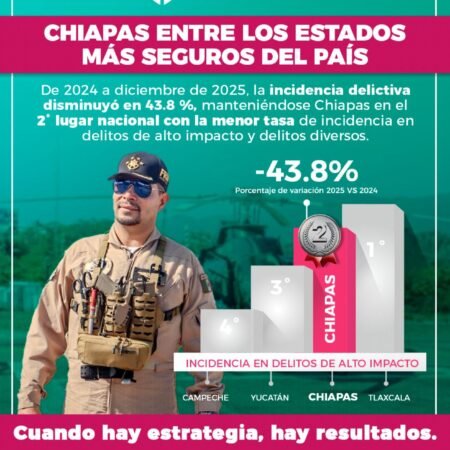 Chiapas se consolida como una de las entidades con menor incidencia delictiva del país: SSP