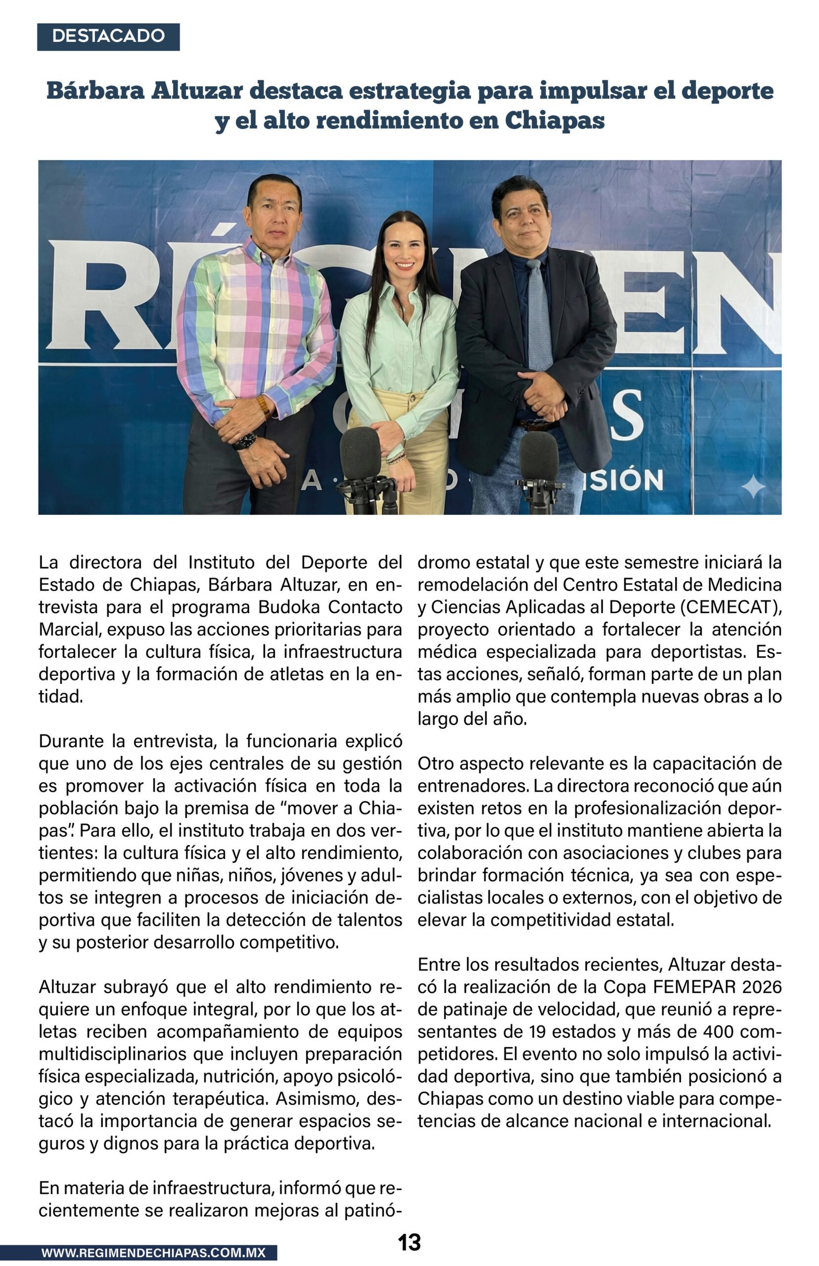 Regimen TV Bárbara Altuzar destaca estrategia para impulsar el deporte y el alto rendimiento en Chiapas