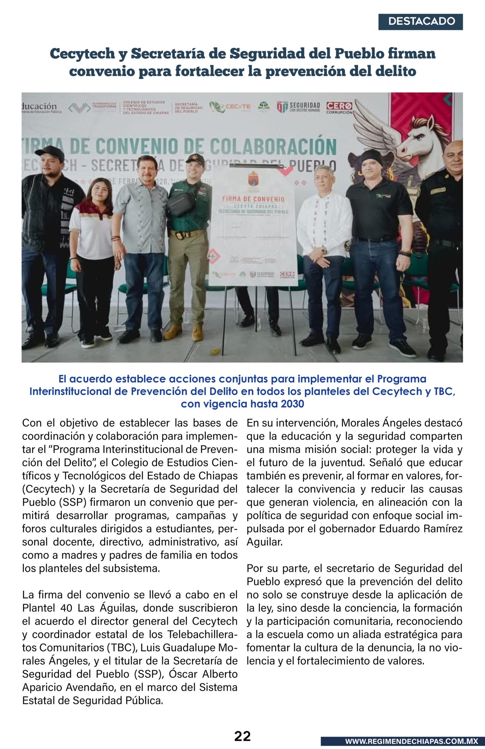 Educación Cecytech y Secretaría de Seguridad del Pueblo firman convenio para fortalecer la prevención del delito