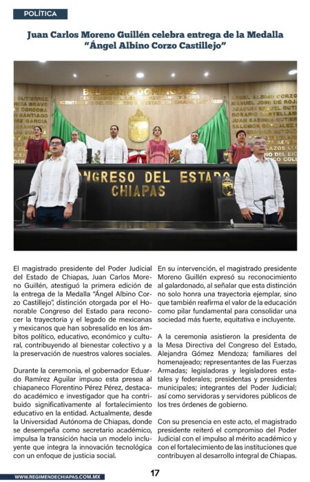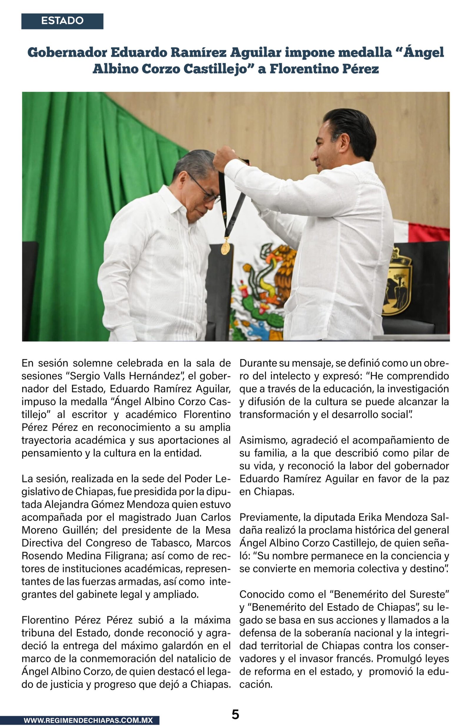 Estado Gobernador Eduardo Ramírez Aguilar impone medalla “Ángel Albino Corzo Castillejo” a Florentino Pérez