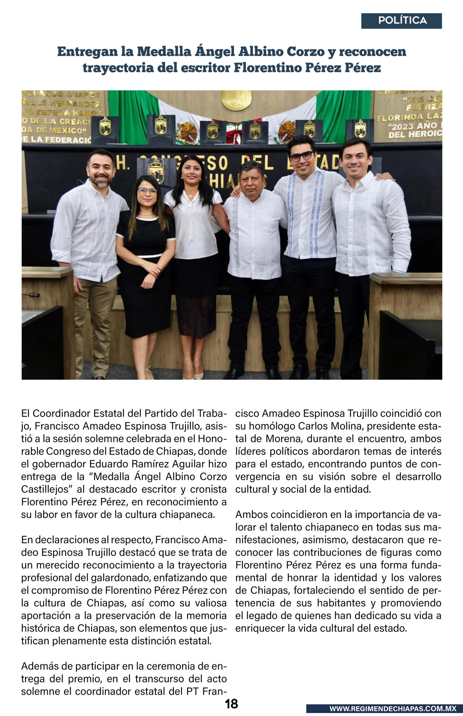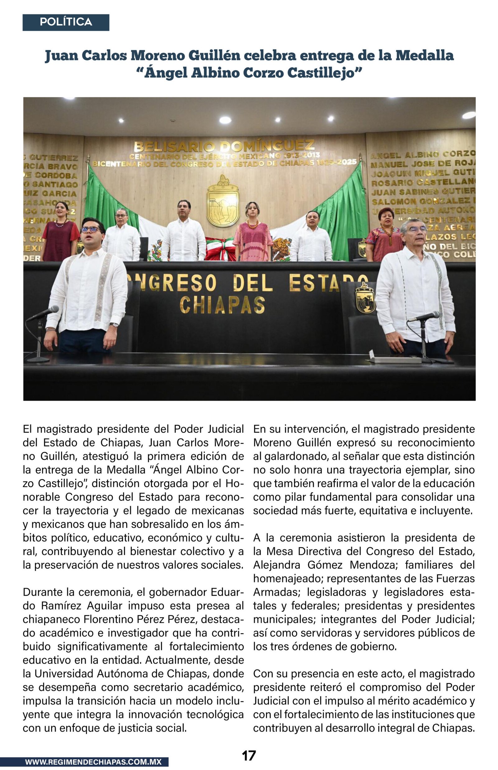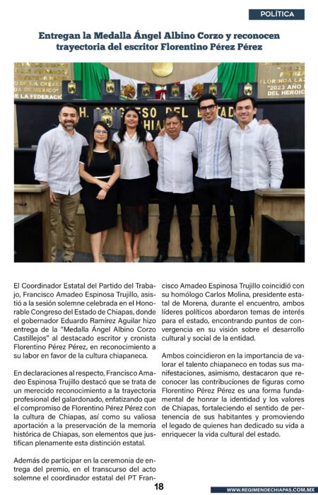 Estado Entregan la Medalla Ángel Albino Corzo y reconocen trayectoria del escritor Florentino Pérez Pérez