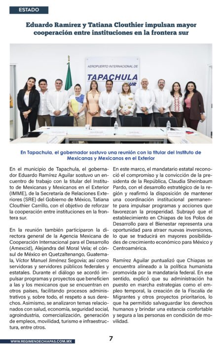 Municipios Eduardo Ramírez y Tatiana Clouthier impulsan mayor cooperación entre instituciones en la frontera sur