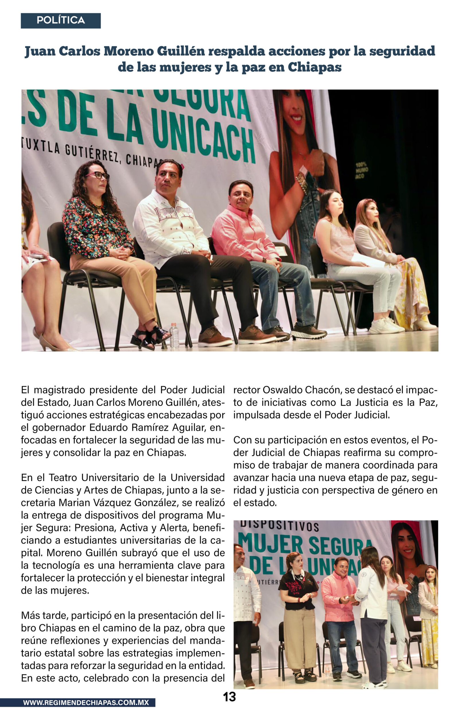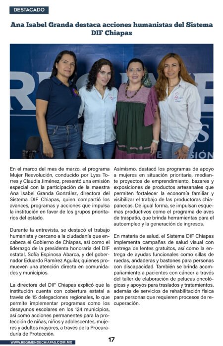 Estado Juan Carlos Moreno Guillén respalda acciones por la seguridad de las mujeres y la paz en Chiapas
