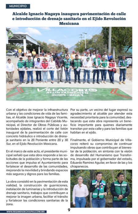 Municipios 𝗔𝗹𝗰𝗮𝗹𝗱𝗲 𝗜𝗴𝗻𝗮𝗰𝗶𝗼 𝗡𝗮𝗴𝗮𝘆𝗮 𝗶𝗻𝗮𝘂𝗴𝘂𝗿𝗮 𝗽𝗮𝘃𝗶𝗺𝗲𝗻𝘁𝗮𝗰𝗶𝗼́𝗻 𝗱𝗲 𝗰𝗮𝗹𝗹𝗲 𝗲 𝗶𝗻𝘁𝗿𝗼𝗱𝘂𝗰𝗰𝗶𝗼́𝗻 𝗱𝗲 𝗱𝗿𝗲𝗻𝗮𝗷𝗲 𝘀𝗮𝗻𝗶𝘁𝗮𝗿𝗶𝗼 𝗲𝗻 𝗲𝗹 𝗘𝗷𝗶𝗱𝗼 𝗥𝗲𝘃𝗼𝗹𝘂𝗰𝗶𝗼́𝗻 𝗠𝗲𝘅𝗶𝗰𝗮𝗻𝗮