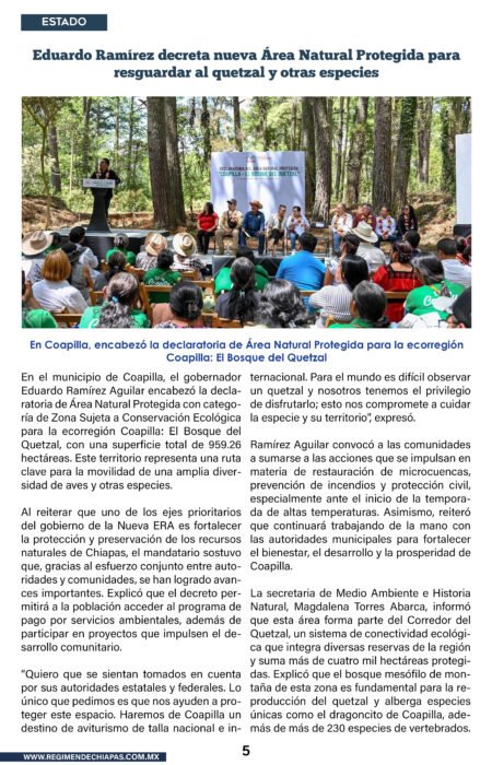 Estado ¡Lo anunciamos con orgullo! Nace una nueva Área Natural Protegida en Chiapas: “Coapilla – El bosque del quetzal”