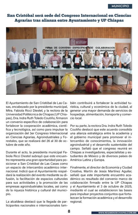 Municipios San Cristóbal será sede del Congreso Internacional en CienciasAgrarias tras alianza entre Ayuntamiento y UP Chiapas