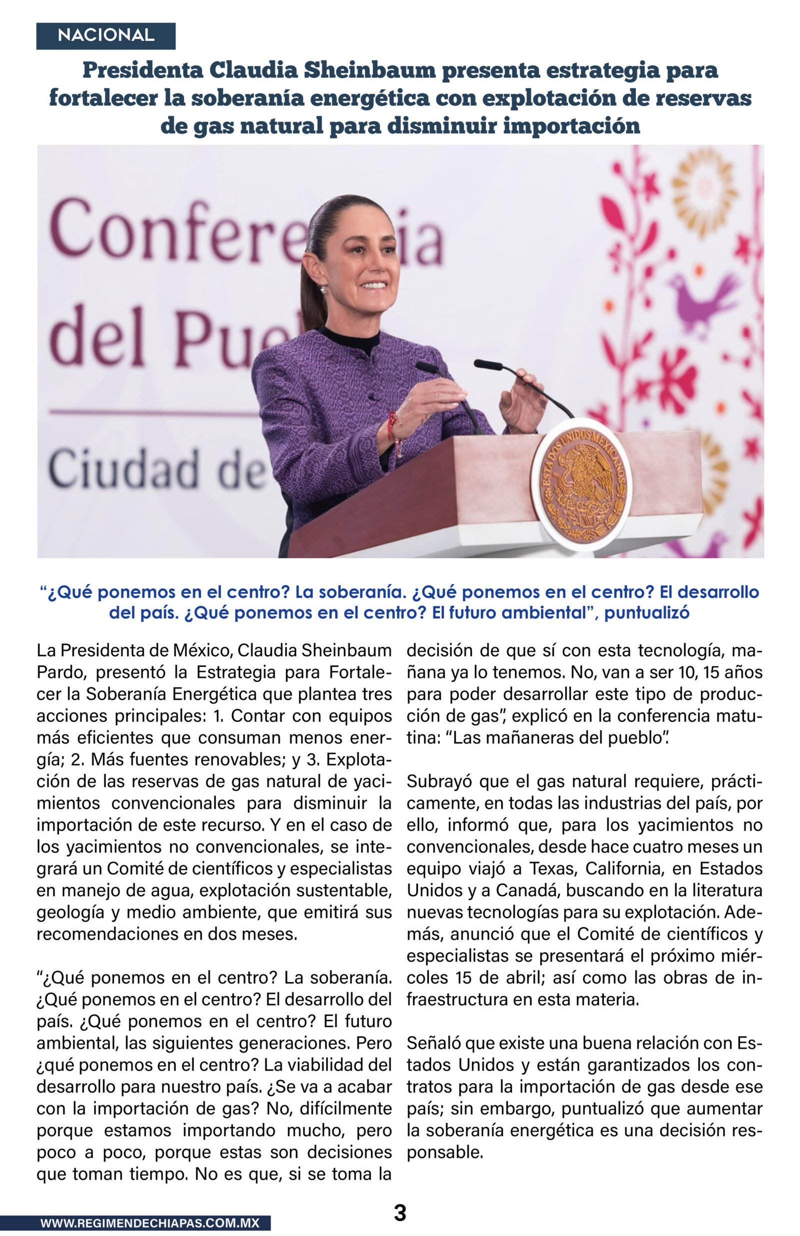 Nacionales Presidenta Claudia Sheinbaum presenta estrategia para fortalecer la soberanía energética con explotación de reservas de gas natural para disminuir importación