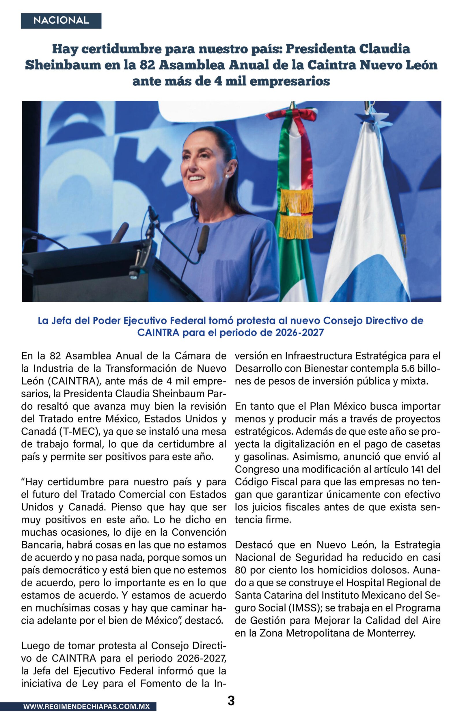 Nacionales Hay certidumbre para nuestro país: Presidenta Claudia Sheinbaum en la 82 Asamblea Anual de la Caintra Nuevo León ante más de 4 mil empresarios