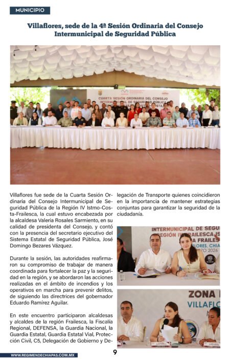 Municipios Villaflores, sede de la 4ª Sesión Ordinaria del Consejo Intermunicipal de Seguridad Pública