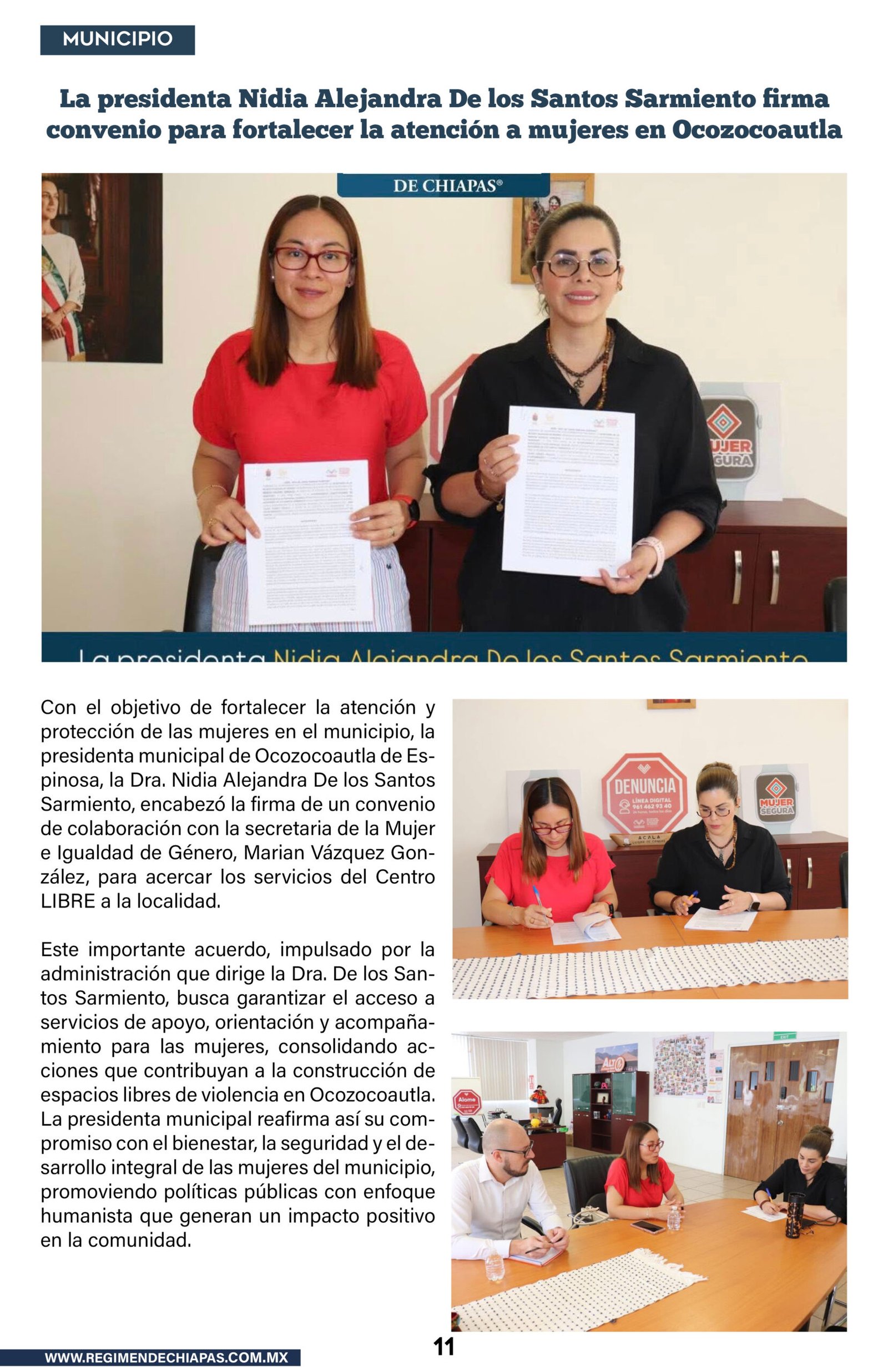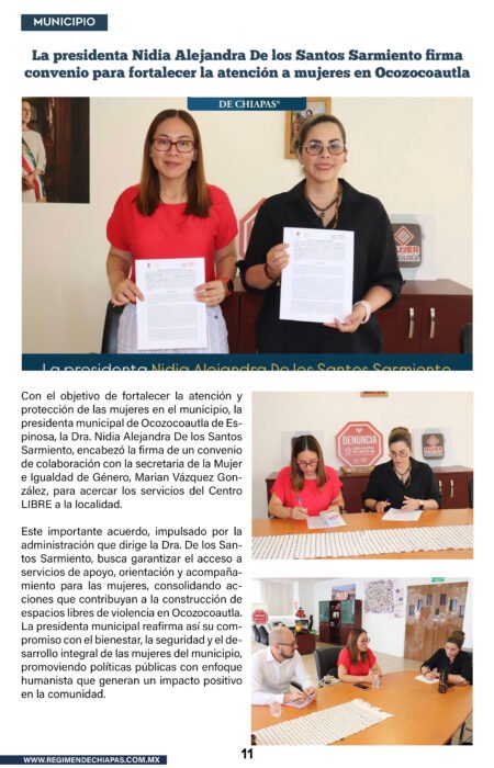 Municipios La presidenta Nidia Alejandra De los Santos Sarmiento firma convenio para fortalecer la atención a mujeres en Ocozocoautla