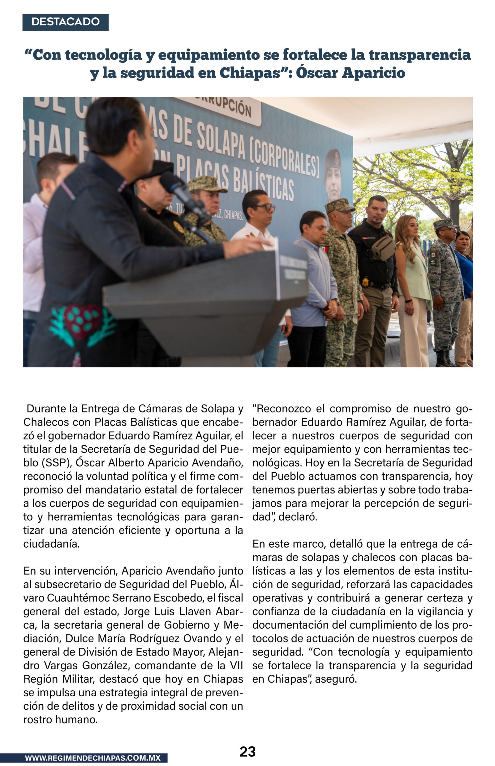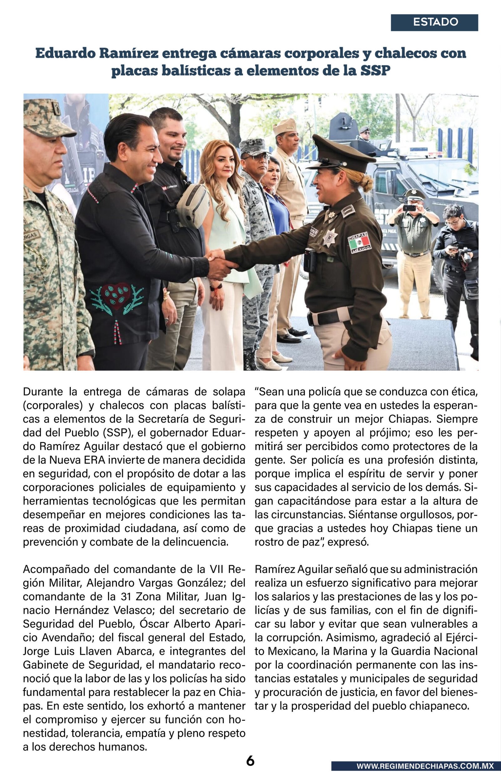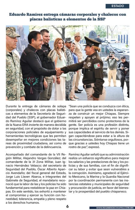 Estado Eduardo Ramírez entrega cámaras corporales y chalecos con placas balísticas a elementos de la SSP
