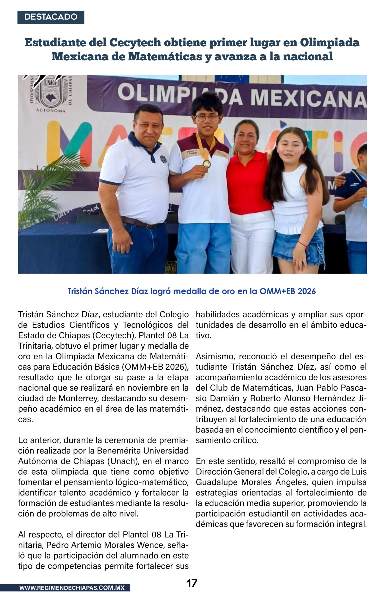 Educación Estudiante del Cecytech obtiene primer lugar en Olimpiada Mexicana de Matemáticas y avanza a la nacional