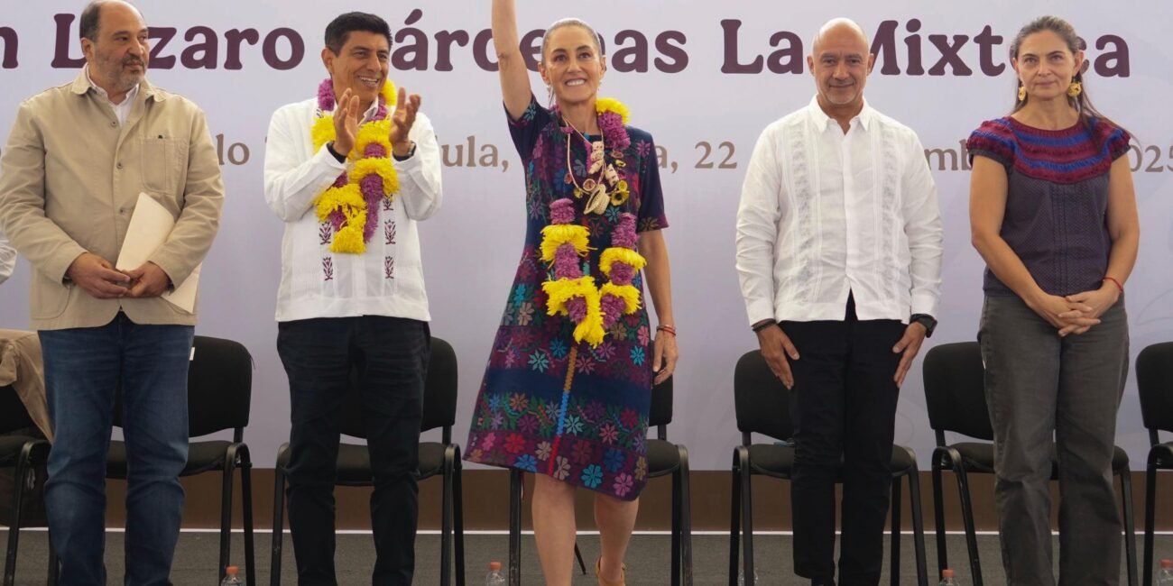 San Pedro y San Pablo Teposcolula, Oaxaca, a 22 de noviembre de 2025.- Desde el corazón de La Mixteca oaxaqueña, la Presidenta Claudia Sheinbaum Pardo presentó los avances del Plan General Lázaro Cárdenas del Río, una estrategia integral y de articulación entre dependencias y los tres niveles de gobierno en beneficio de 1.54 millones de habitantes y que suma una inversión de 5 mil 900 millones de pesos (mdp) en infraestructura carretera, estructura hospitalaria, Programas para el Bienestar y caminos artesanales.