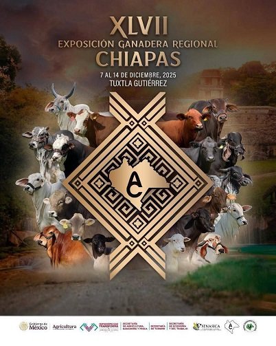 La agenda incluye la LXI Exposición Nacional de Ganado Cebú, del 28 de noviembre al 6 de diciembre; la Exposición de Ovinocultores, del 8 al 14 de diciembre; la XLVII Exposición Ganadera Regional Chiapas, del 7 al 14 de diciembre; y la Expo Leche – Congreso y Concurso Lechero, del 11 al 13 de diciembre, todas en Tuxtla Gutiérrez.