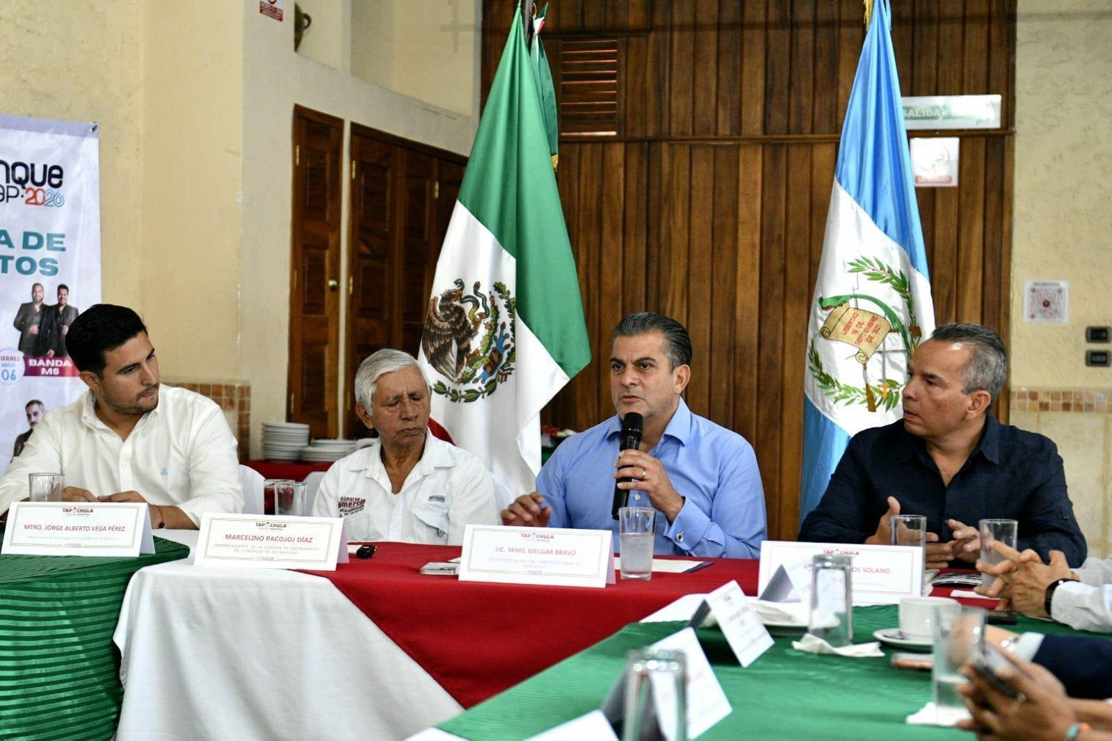 16 de febrero de 2026, Retalhuleu, Guatemala.– Tapachula es hoy una ciudad que se vive en paz, confiable para invertir y con capacidad para el turismo de reuniones, afirmó el presidente municipal Yamil Melgar Bravo al presentar el destino ante empresarios guatemaltecos.